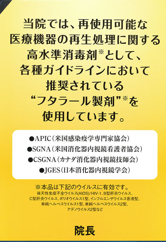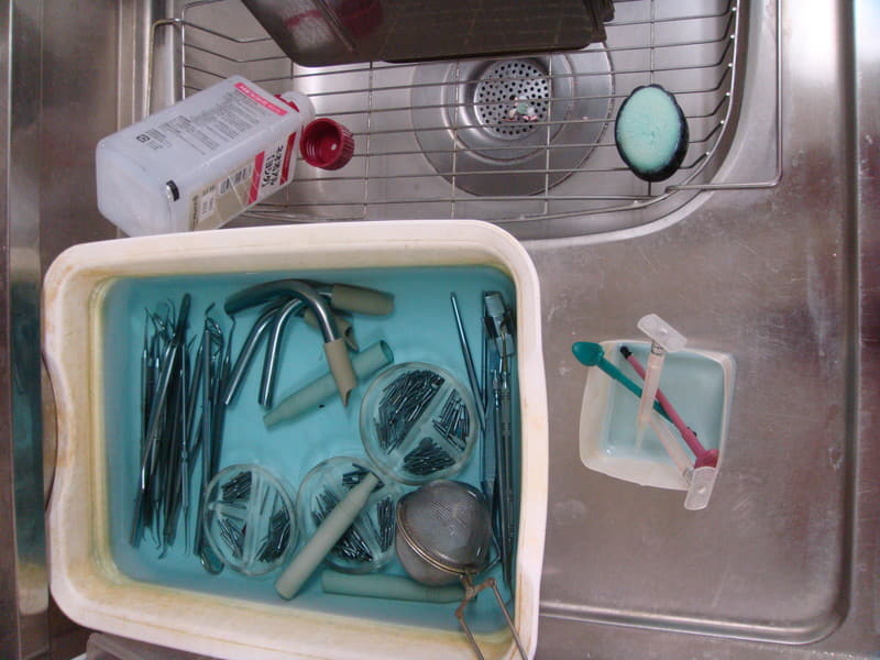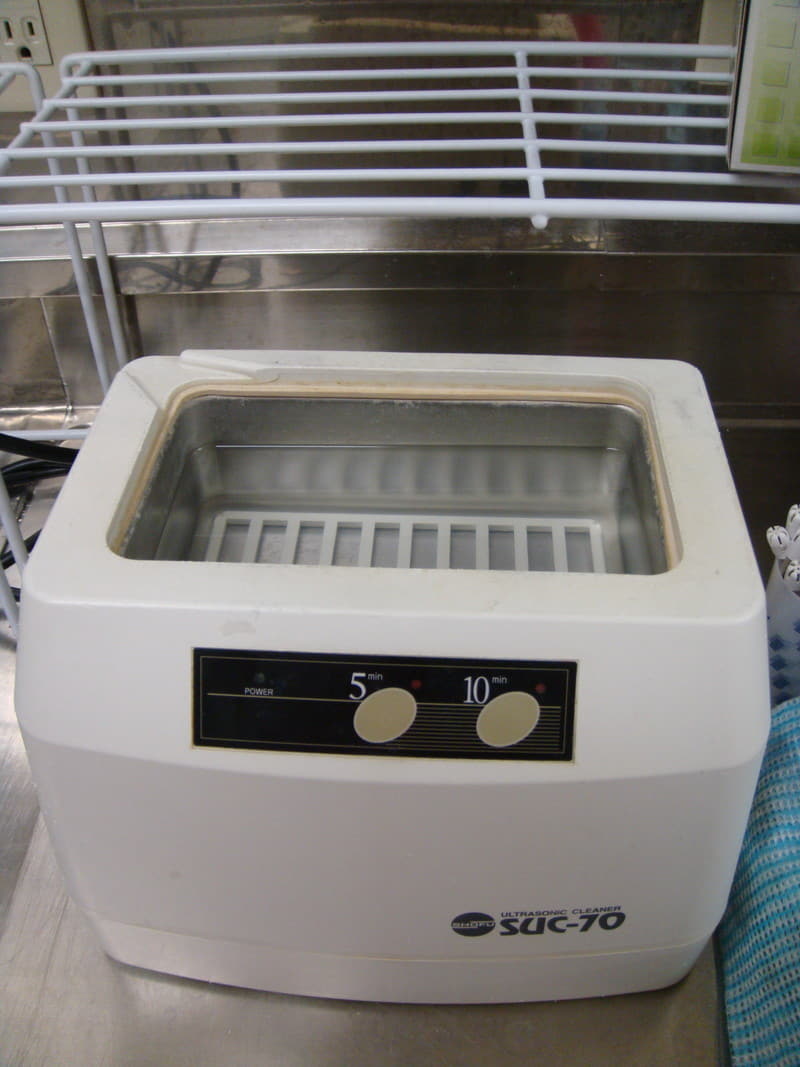 本院では、患者様に使用するほぼ全ての器具類は、洗剤と血液分解酵素剤(プリザイム)で洗浄後、フタラール製剤(ディスオーパ)に浸漬し、超音波洗浄を行い、オートクレーブという高圧蒸気滅菌機を使用し滅菌しております。