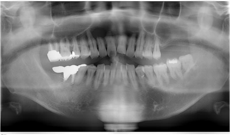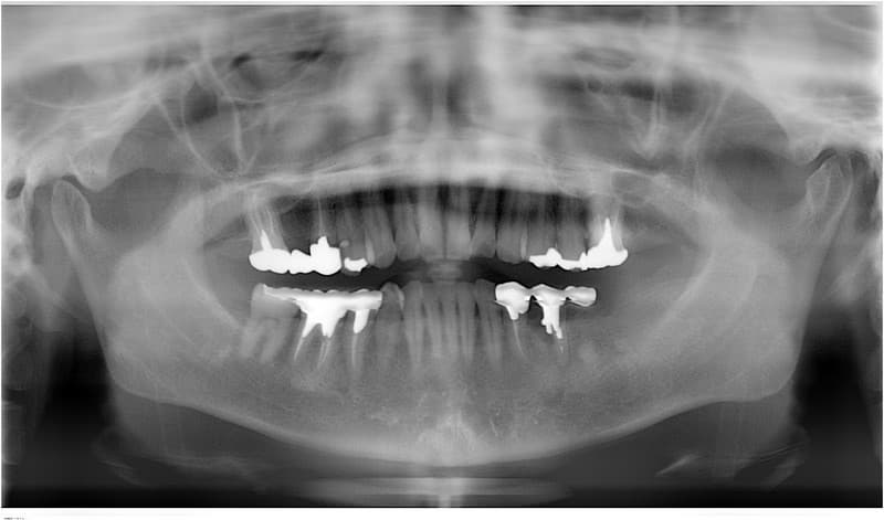 土台になる歯がないため総入れ歯となります。